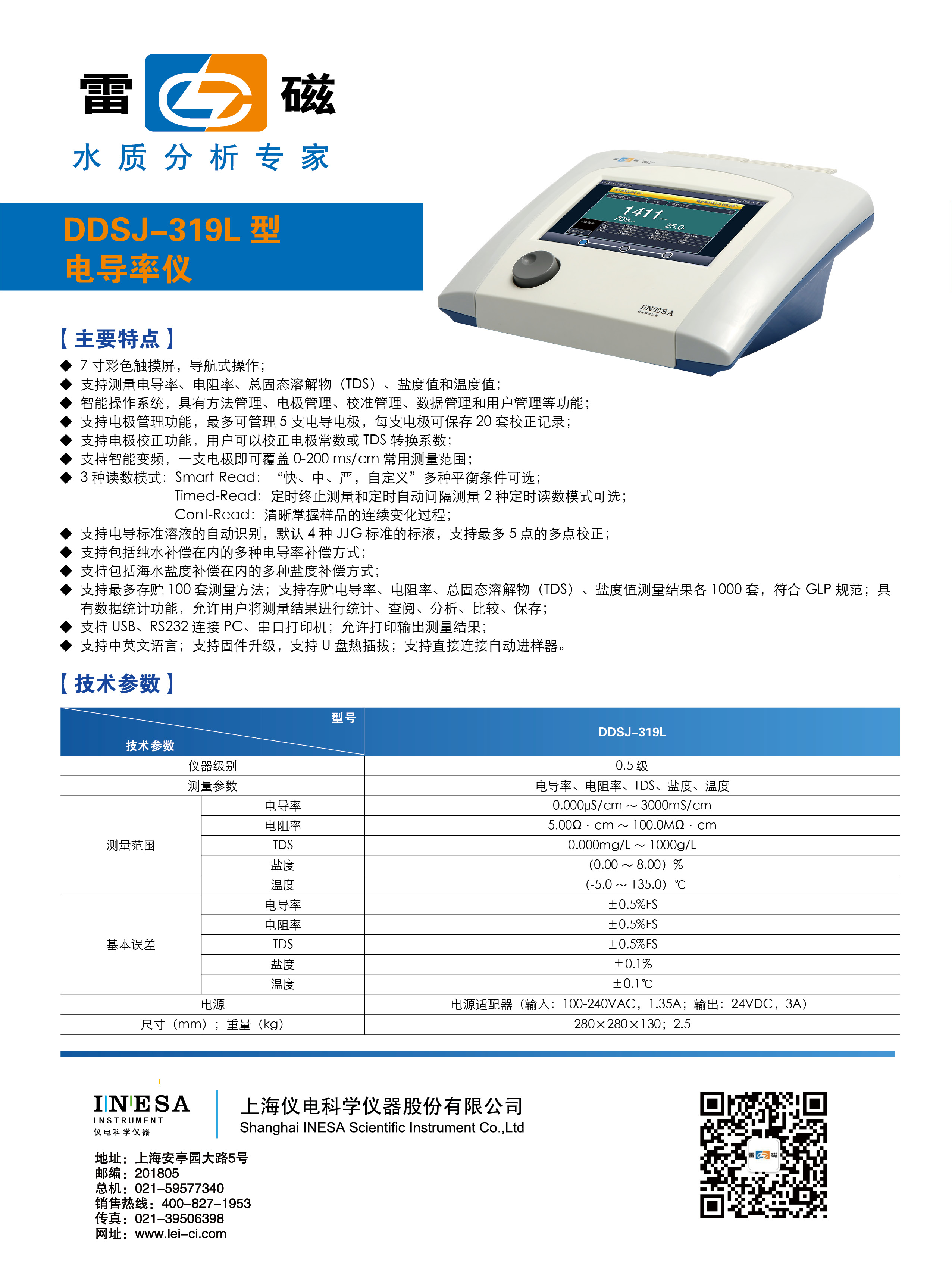 ※支持最多存貯100套測量方法;支持存貯電導率、電阻率、總固態溶解物(TDS)、鹽度值測量結果各1000套,符合GLP規范;具有數據統計功能,允許用戶將測量結果進行統計、查閱、分析、比較、保存;