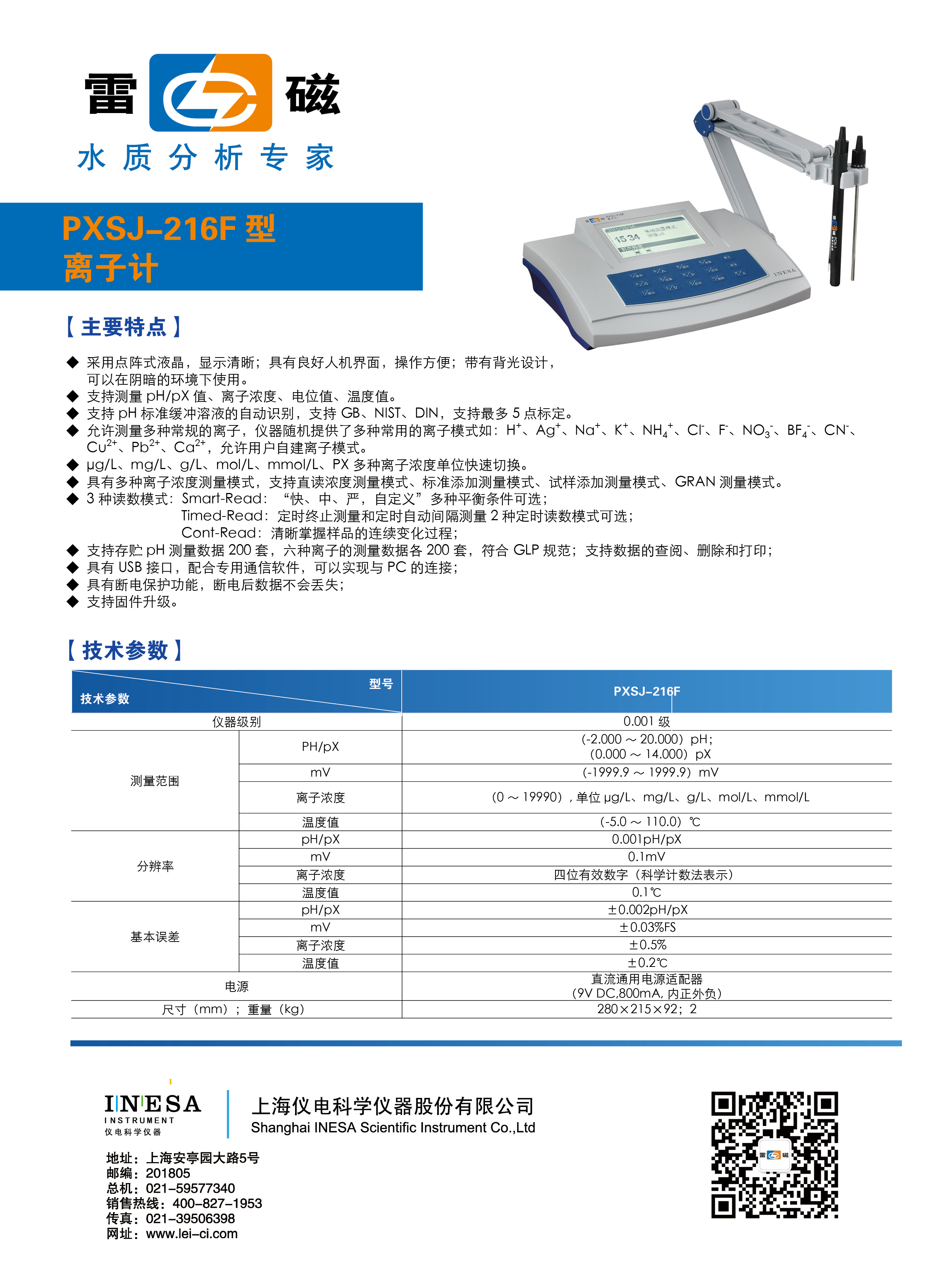 采用新型材料PC面板,輕觸數字式按鍵,可靠耐用;支持自動溫度補償,自動識別5種緩沖溶液,支持1-3點校準;支持USB連接PC、串口打印機;允許打印輸出測量結果。