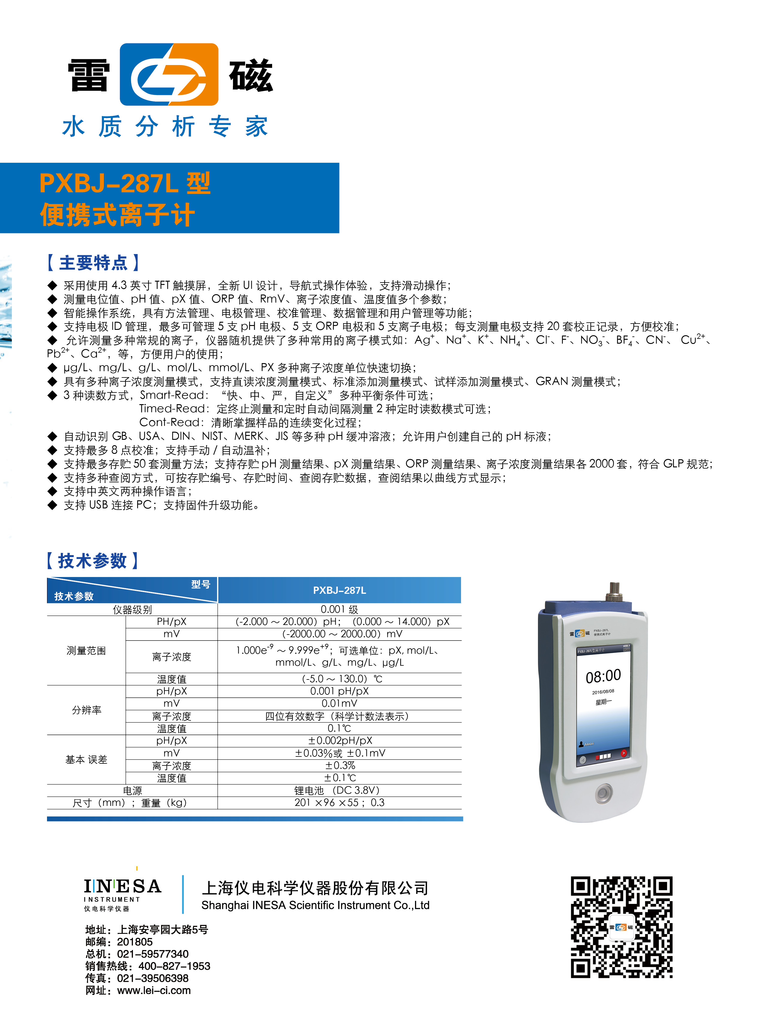 測量范圍 | pH/pX | (-2.000~20.000)pH/pX |