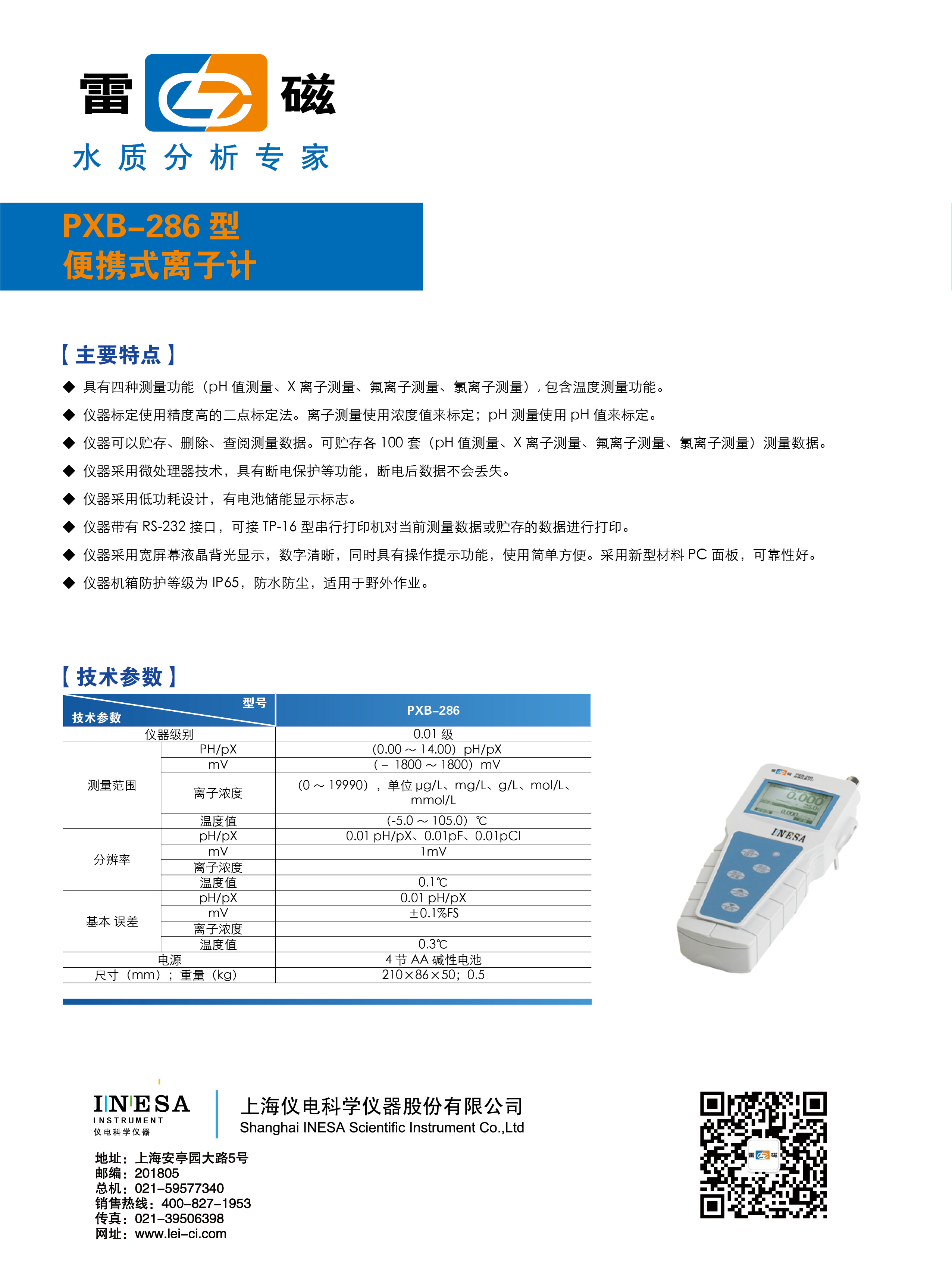 采用新型材料PC面板,輕觸數字式按鍵,可靠耐用;支持自動溫度補償,自動識別5種緩沖溶液,支持1-3點校準;支持USB連接PC、串口打印機;允許打印輸出測量結果。