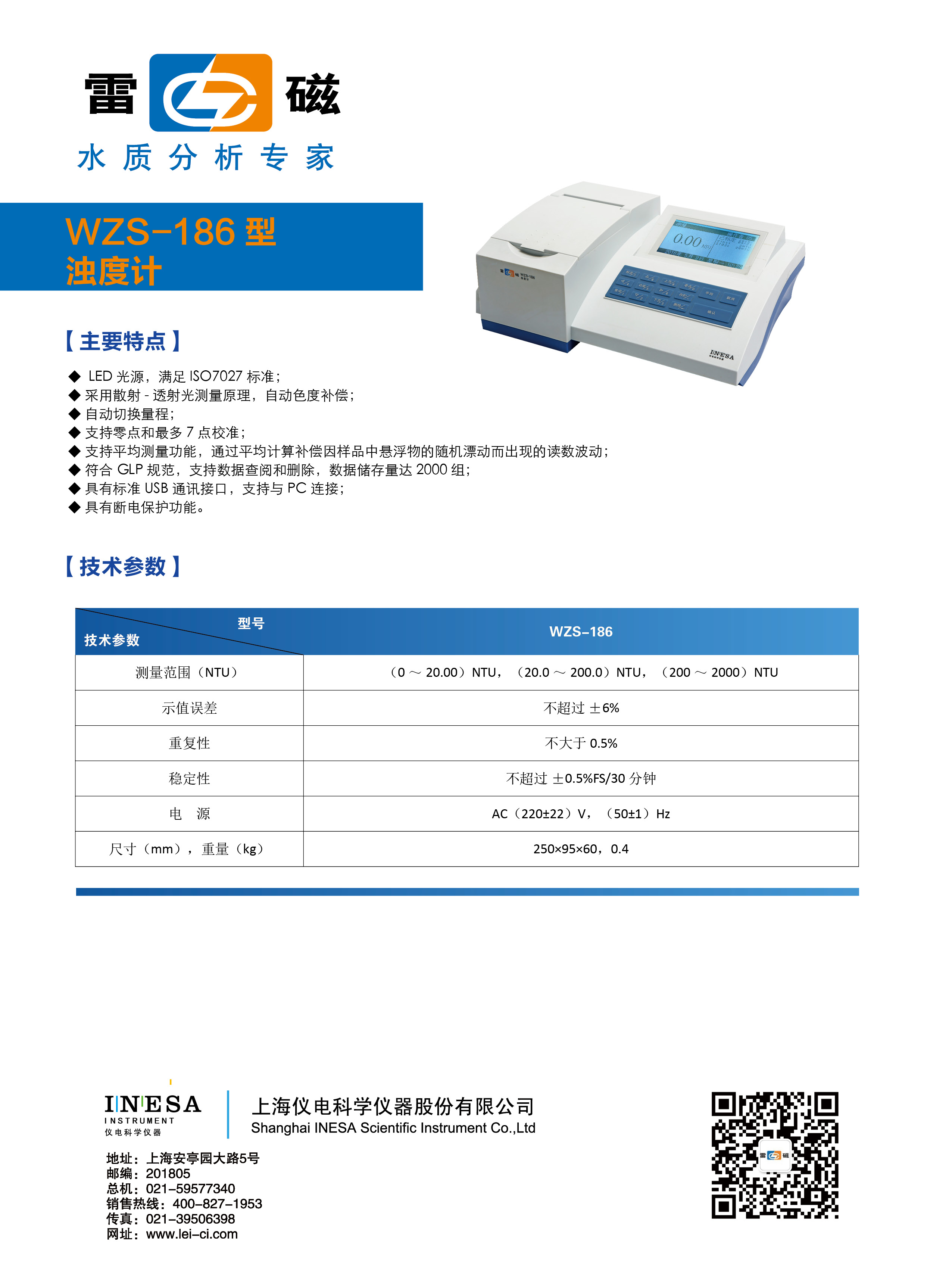 測量范圍(NTU) | (0~20.00)NTU,(20.0~200.0)NTU,(200~2000)NTU |