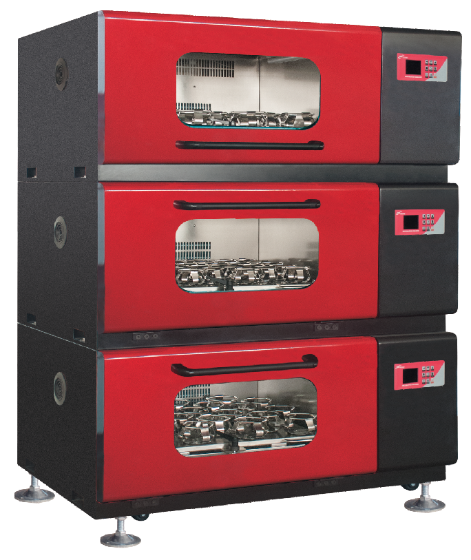 ※下兩層為下翻式開門,第三層為上翻式開門,搖板可自由抽出,方便裝卸搖瓶,每層可獨立控制,各層可在不同溫度轉速下同時運轉或根據需要運轉任意一層。
