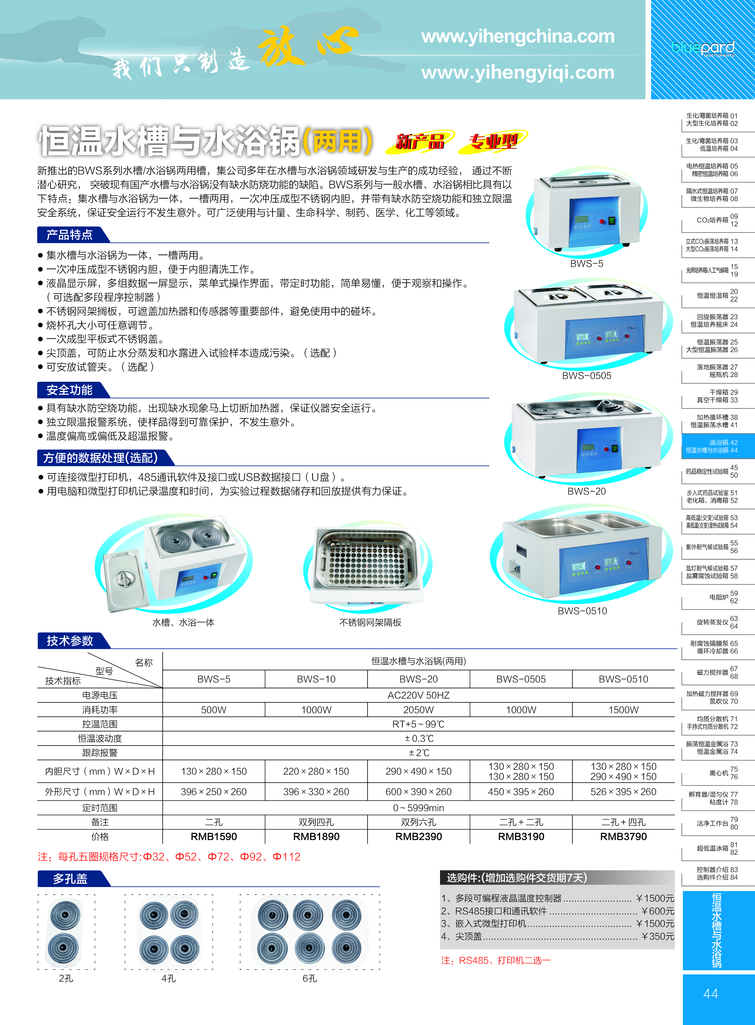 新推出的BWS系列水槽/水浴鍋兩用槽,集公司多年在水槽與水浴鍋領域研發與生產的成功經驗, 通過不斷潛心研究, 突破現有國產水槽與水浴鍋沒有缺水防燒功能的缺陷。BWS系列與一般水槽、水浴鍋相比具有以下特點:集水槽與水浴鍋為一體,一槽兩用,一次沖壓成型不銹鋼內膽,...