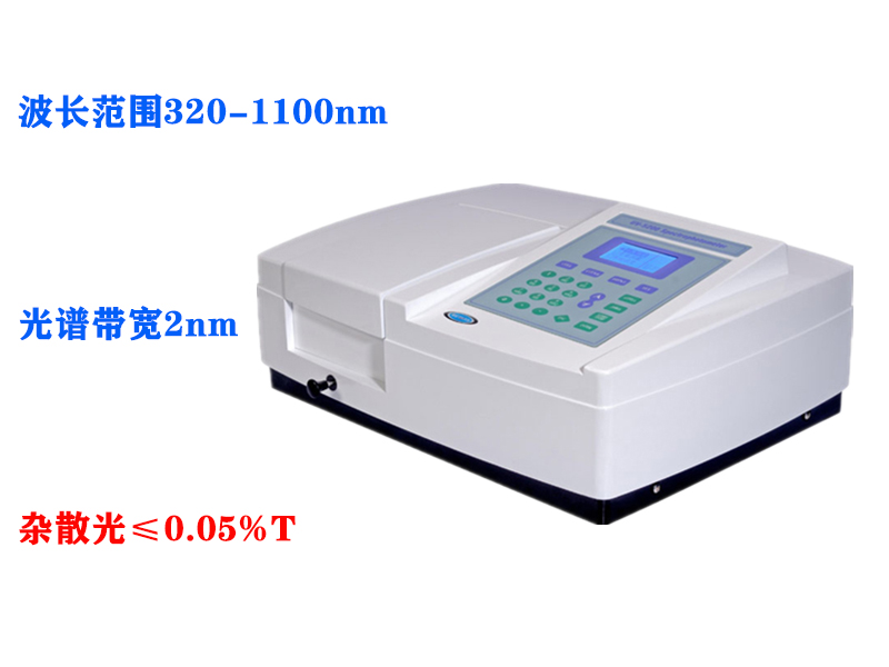 上海元析V-5800(PC)型可見分光光度計波長范圍320-1100nm,光譜帶寬2nm,雜散光≤0.05%T;V-5800(PC)型可見分光光度計雙光束比例監(jiān)測光學(xué)系統(tǒng),波長自動校準(zhǔn)、自動設(shè)定、偏差自我修復(fù),能直接建立標(biāo)準(zhǔn)曲線,V-5800PC型標(biāo)配元析公司的掃描軟件可直接完成光度測量、定量測試、定性測試、動力學(xué)測試、多波長測試、DNA/蛋白質(zhì)測試及數(shù)據(jù)圖譜的處理。