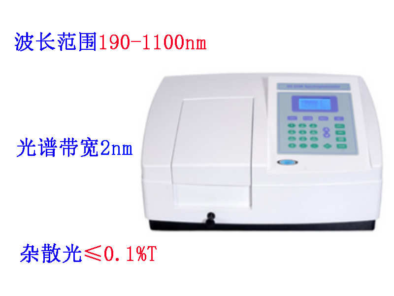 上海元析V-5100B型可見分光光度計(jì)波長范圍320-1000nm,光譜帶寬 4nm或2nm可選,雜散光0.05%T;V-5100B型可見分光光度計(jì)可連續(xù)測試和存儲200組數(shù)據(jù),測量和存儲的數(shù)據(jù)具有斷電保持功能,波長自動校準(zhǔn)、自動設(shè)定、偏差自我修復(fù);