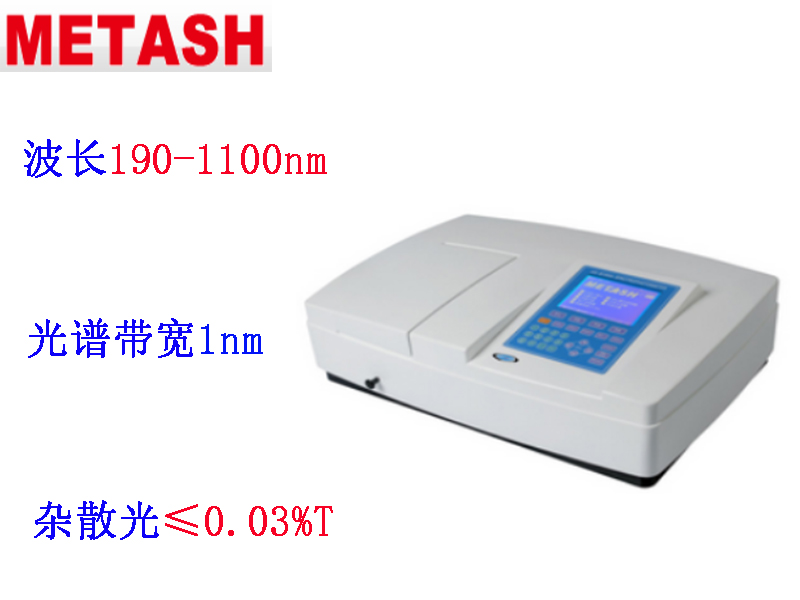 上海元析V-5100B型可見分光光度計波長范圍320-1000nm,光譜帶寬 4nm或2nm可選,雜散光0.05%T;V-5100B型可見分光光度計可連續(xù)測試和存儲200組數據,測量和存儲的數據具有斷電保持功能,波長自動校準、自動設定、偏差自我修復;